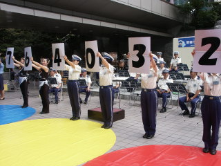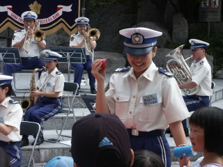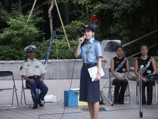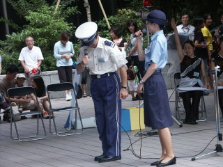 | 演奏中の風景 | 764032はナローヨオマワリサンニとお読みください。 | 司会の女性警察官との掛け合いは昨年と同じ佐藤隊員でした。 |