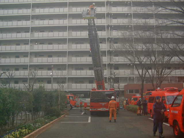 平成16年2月29日、市川市南大野の市川パークシティ(高層マンション)で高層建物消防総合訓練が行われました。