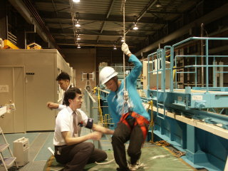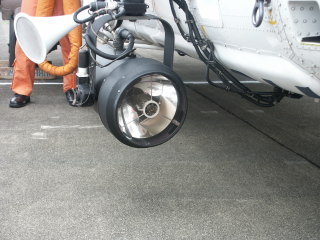 降下体験コーナー2降下体験コーナーに用いられた新型降下器です。海上保安庁が開発したものです。ロープからの離脱が1秒で可能です。 開発ストーリーについてはJ-ERSCUE VOl20に掲載されています。 |