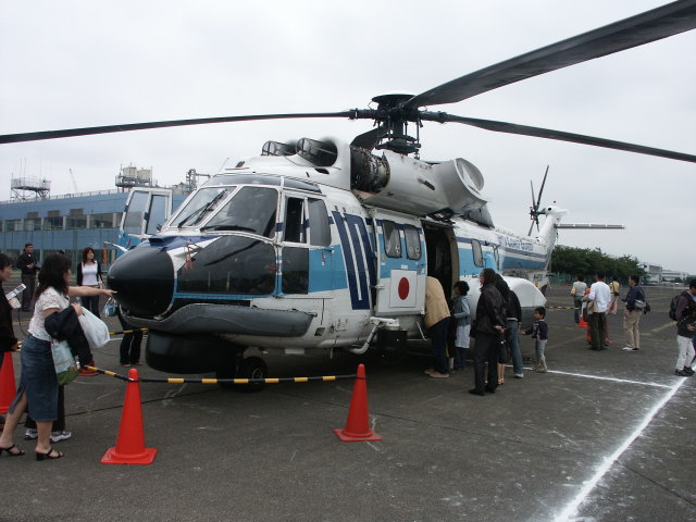 | 午後から羽田航空基地よりアエロスパシアルAS332L型ヘリ(スーパーピューマ)「わかわし」が飛来し地上展示が行われました。 AS332L わかわしのデータ