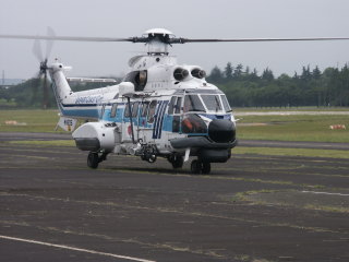羽田航空基地より立川に飛来してきたAS332「わかわし」 |