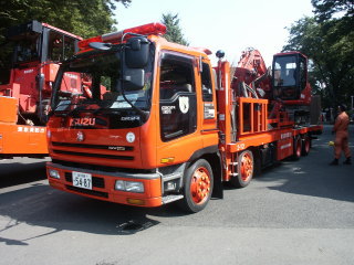 重機搬送車(二本部ハイパー所属)トラクターショベルやドラグショベルを搬送する車両です |