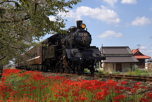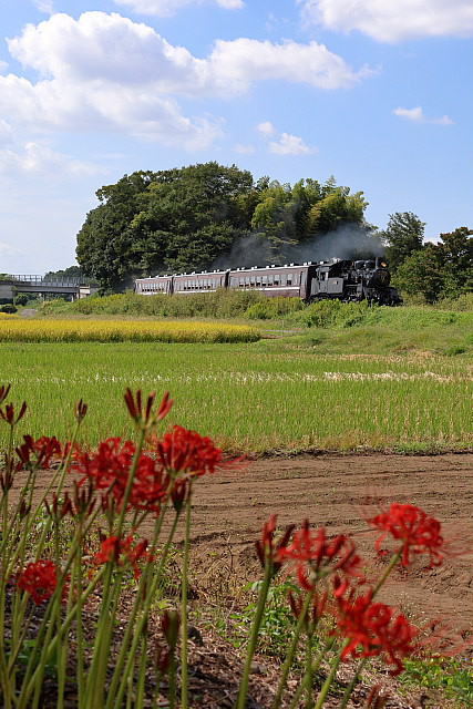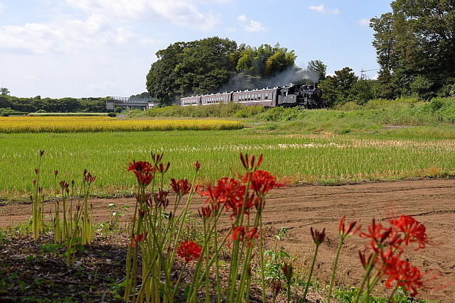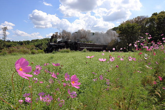 初秋の真岡鐵道へ「SLもおか」の撮影に出掛けて来ました。沿線には彼岸花やコスモスが咲き始め、畑には蕎麦の花が咲き秋の訪れを感じる芳賀路の風景でした。 |
