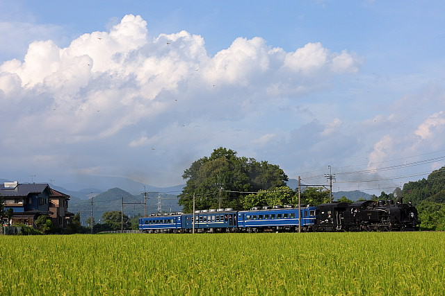 残暑厳しい東武鬼怒川線へ「SL大樹」の撮影に出掛けて来ました。この日は鬼怒川線沿線の夏の風景と「SL大樹」を絡めて撮影してきました。この日の「SL大樹」のヘッドマークはC11-207がメイン、C11-325がカワセミカラー掲出でした。