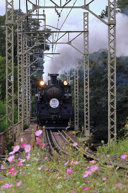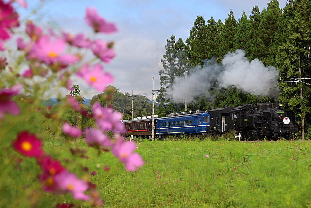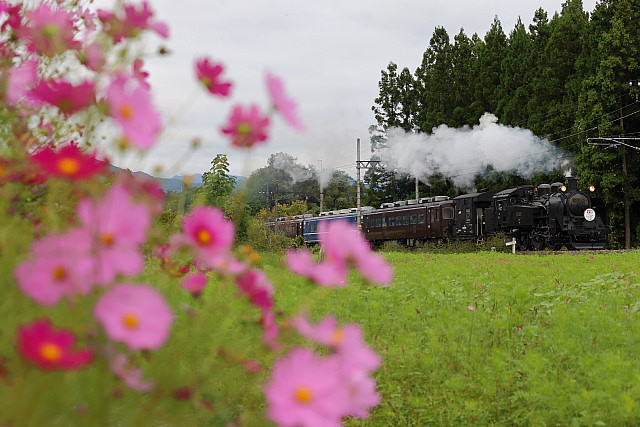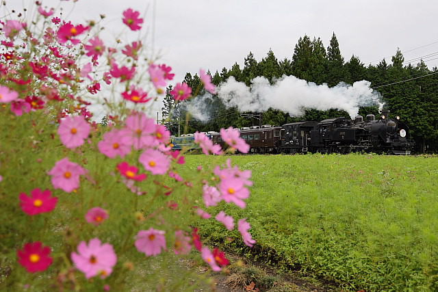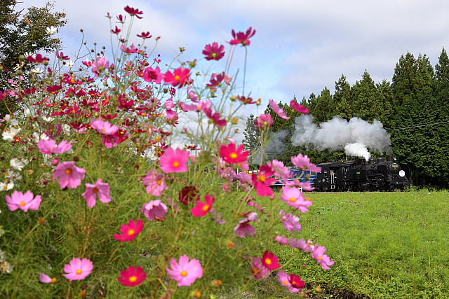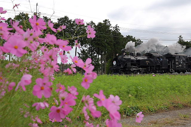 コスモス咲く東武鬼怒川線へ「SL大樹」の撮影に出掛けて来ました。この日は倉ヶ崎SL花畑公園に咲くコスモスをメインに「SL大樹」を絡めて撮影してきました。この日の「SL大樹」はタミヤコラボヘッドマーク掲出です。