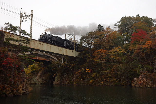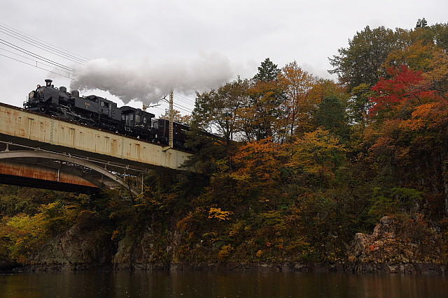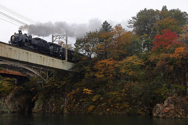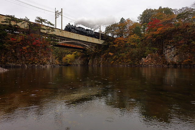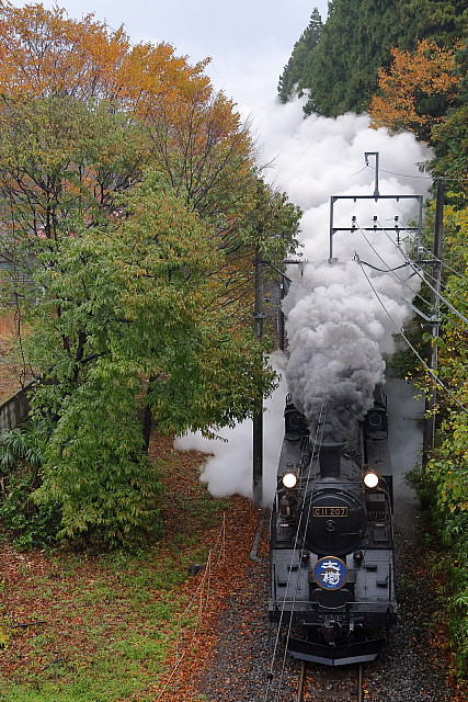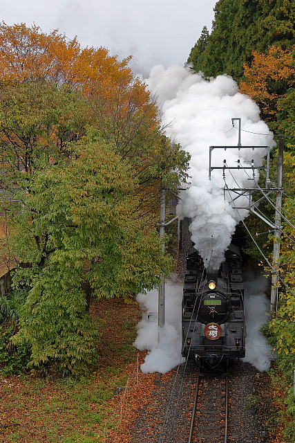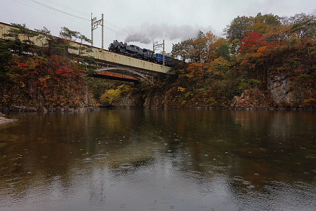沿線の木々が色付いた東武鬼怒川線へ「SL大樹」の撮影に出掛けて来ました。この日は小雨の予報でしたがほぼ終日本降りの中での撮影となってしまいました。期待した鬼怒川橋梁では煙に恵まれませんでしたが汽笛とともに上がった蒸気の煙に救われたかたちです。