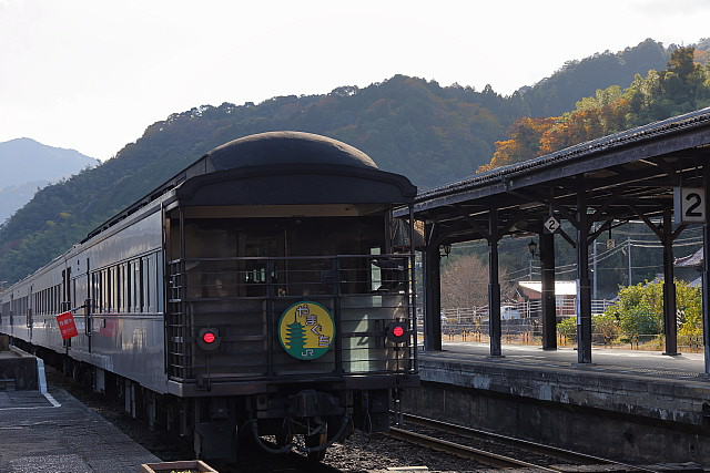 | 紅葉の季節を迎えた山口線に「SLやまぐち号」の撮影に出掛けて来ました。沿線の山々は色付きはじめ紅葉の風景が広がっていましたが、やはり温暖化の影響でしょうか紅葉の山々がきれいに彩る長門峡などでは紅葉する前に落葉してしまったのでしょうか冬枯れの木々が少し目立っていました。返し津和野駅発車時間が16路12分発と遅くなった「SLやまぐち」がこの時期に西日浴びて走ることができる区間の津和野盆地の山斜面では彩りはじめた紅葉の木々に西日が当たりさらに茜色に染まっていました。 |