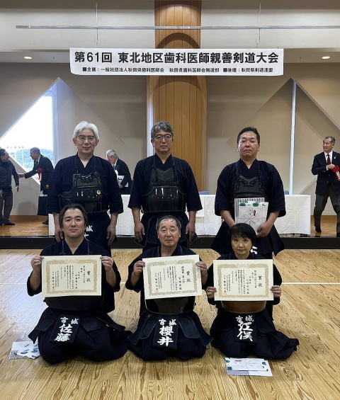 | ■ 祝! 都道府県大会出場 2025 4/29 石田圭太 先生 都道府県大会出場(青森県副将) ■ 祝! 2024.6/1 大岩真先生 全日本医師剣道大会 50歳代の部 個人戦 優勝 <神奈川県立武道館> ![]() ■ 祝! 井若順子先生 都道府県大会出場(山形県副将) 2024 7/15 日本武道館 ![]() ■ 祝昇段! 敬称略