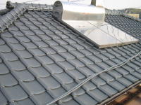 高圧洗浄後、瓦用のセメントを吹きつけ、水性シリコン2層で仕上てあります。予算に応じて溶剤型もあります。 コロニアル屋根も塗り替えが必要です!