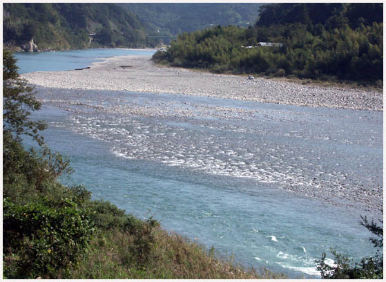 西日本で最高の石鎚山(1892m)を源に、愛媛県、高知県を流域とし、高知市中心部の10km西側を流れて土佐湾に注ぐ川。清流と言えば四万十川が有名ですが水は仁淀川の方がきれいではないかといわれています。高知からも近く、訪れるのが容易。流域面積は1560km2。河口から50kmのところにある筏津ダムまで、清流が続き、堰は野中兼山が作った八田堰だけです。
