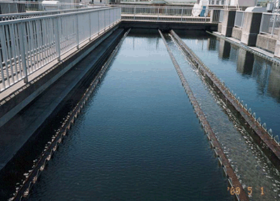 運転時と池が空になって中が見える写真が交互にうつります 最終沈殿池 ![]()
