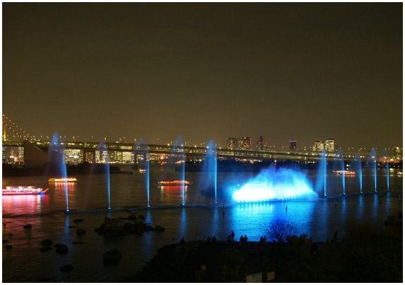 噴水がライトアップされて。運転時間は1時間のうち10分くらい