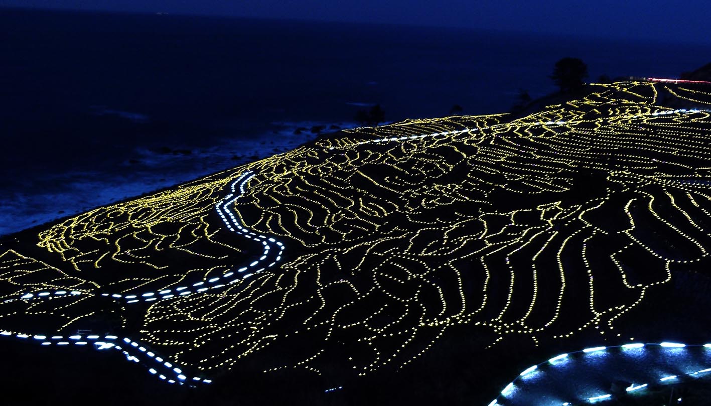 一枚一枚が小さい棚田で日本海に落ちていくような景観が素敵