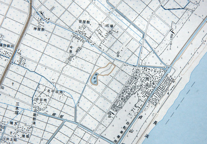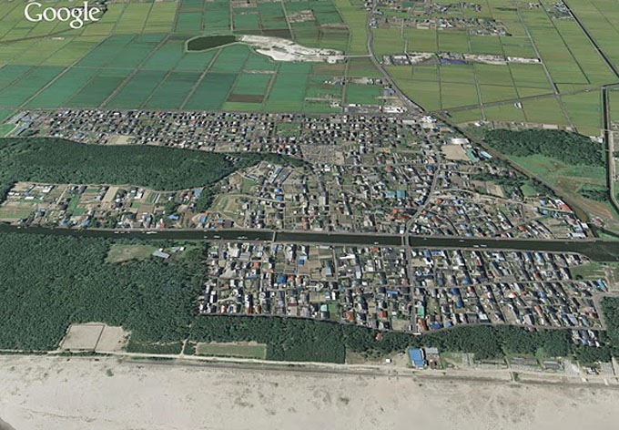 ざっと見て300戸あったのでしょうか。殆どの家が跡形もなくなっています。ここから仙台東部道路まで2km。ただ地区の北にある学校と、近くの石油スタンド、南にある老人ホームの躯体は残っています。引き波によって、貞山堀を越えて水路が掘られてしまいました。