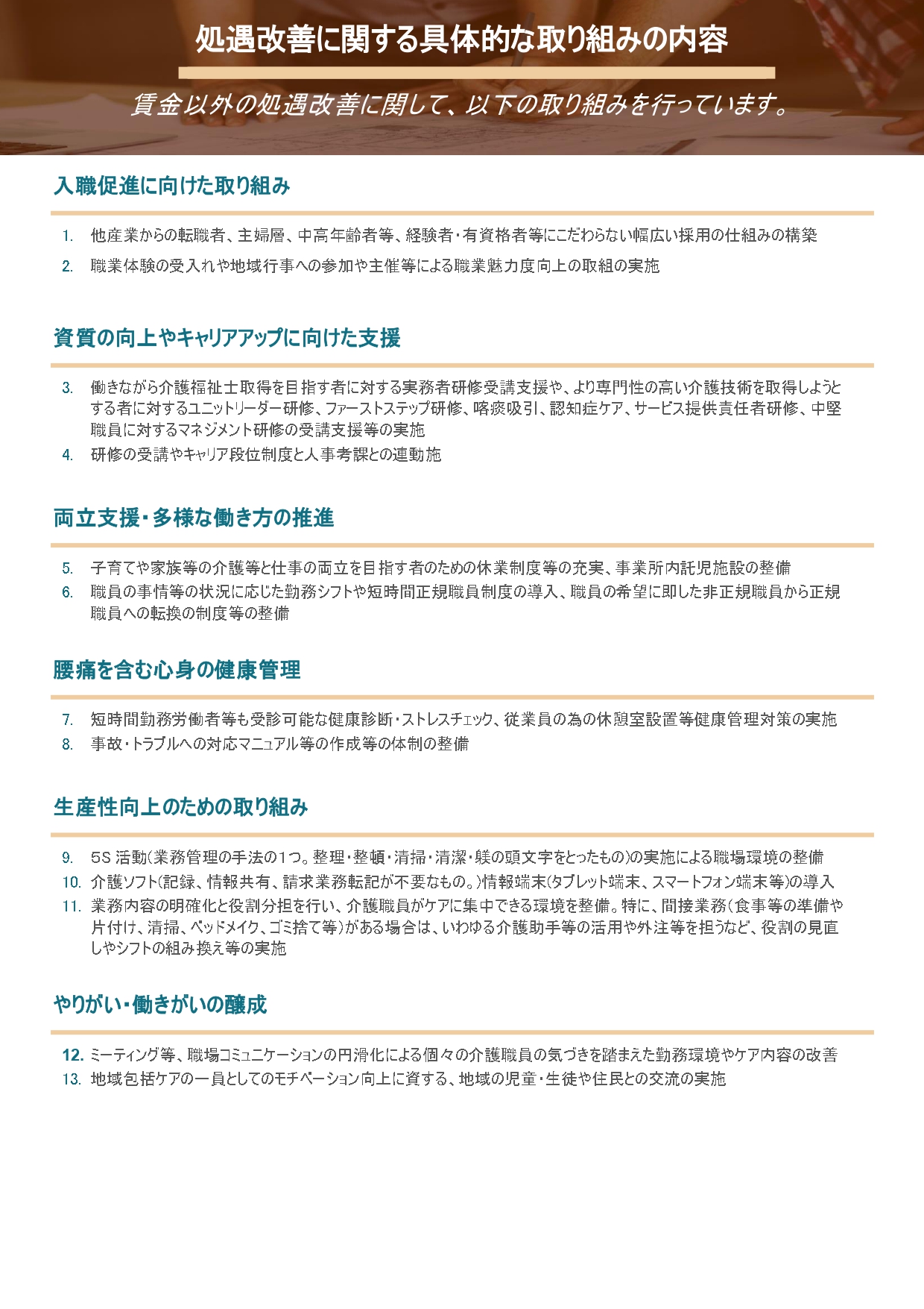 処遇改善に関する具体的な取り組み
