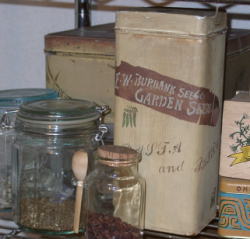 |  大好きな相田みつを氏の書 (もとは、ひめくり暦)を、手でちぎって、 和紙の束に貼りつけただけ。 |  もらい物のワインの箱を 3つ重ねて、オイルステインを塗った。 2つの底は抜いて、ふたに。 キャスターもつけた、傑作!! | ||