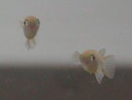 ![]() | 2003年11月3日、ここ最近メダカの動きがおとなしくなった。瓶の中にたくさんいた子メダカが水が悪くなったせいか死んでしまい、数匹だけ残ったので、ペットボトルを切って穴をあけて水槽に一緒に入れました。そこに入れた水草がまた腐ってしまって水を汚してしまったのかも。水を3分の1だけ替えて、ペットボトルの中もきれいにしました。底も汚れが溜まってきているので、もう一度水を換えてきれいにしなければ。親めだかは元気に育ち、卵はまた孵りました。以前よりは産卵が減ったかな? |