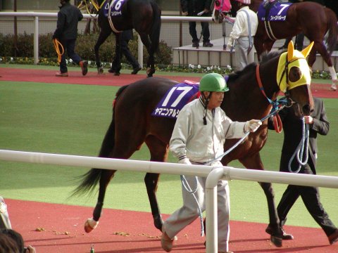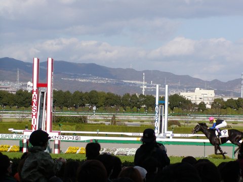 ![]() | ←↑2003年12月7日、阪神ジュベナイルフィリーズ(G1)観戦に行ってきました。当日は秋晴れのいい天気でしたが、日陰に入ると風が肌寒い一日でした。朝9時に阪急梅田駅前に集合し、10時前に競馬場に到着しました。G1開催日のため、朝から大勢の人が来場していました。 →この日は吉岡美穂が来るイベントもあり、昼時間に見に行きました。小田茜が美人でびっくりしました。僕の競馬師匠はもうひとりの水谷さくらがイイと言ってましたがどうかと思います。ちなみに師匠は吉岡美穂は元カノだと言いふらしてました。 | ![]() |