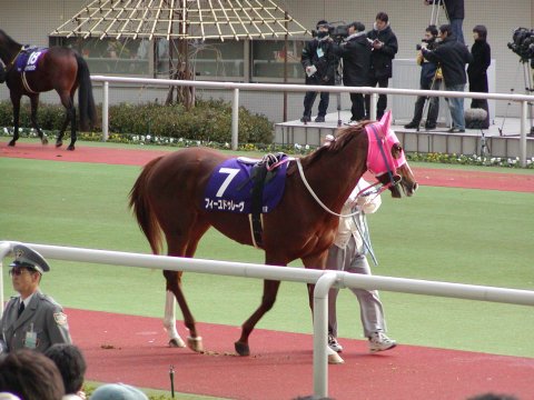 ![]() | ←一番人気はこの「スイープトウショウ」。 さすがG1だけあってどの馬も見栄えします。 →2番人気はフィーユドレイヴ。自分の本命馬です。この馬が勝つと信じてこの馬ばかりバシバシと写真を撮りました。 | ![]() |