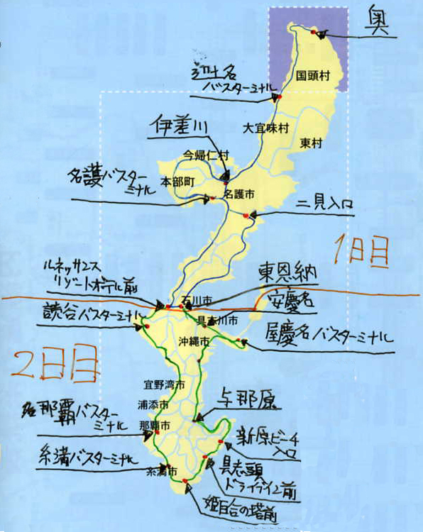 を使い、沖縄県本島を路線バスで1週しました。