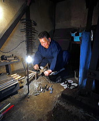 兵庫県の三木市で江戸時代から百年以上続く伝統的な古式鍛錬技法を受け継ぎ、ヤスリの総仕上げ、焼入れにはふいごを使用して炭火で行い、切れ味と使いやすさを重視しております。 左写真は三代目利光です。 商品情報では追入鑿しか掲載しておりませんがその他にも叩鑿・中叩鑿・中薄鑿・差鑿・厚埋木鑿など皆様からのご要望にも対応しますので、気軽にお問い合わせ下さい。 それと、見学(午前中)も受け付けておりますので、事前にご連絡頂きたく思います。 |