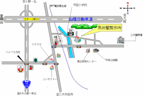 ○自動車 山陽道三木・小野インターより北東へ約5〜10分