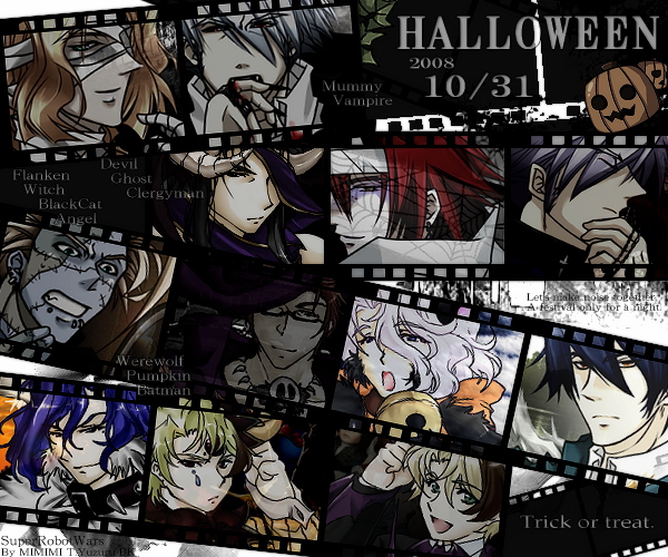 ばんくろ様からのコメント / 鷹夜様からのコメント 以下、みみみの感想です。興味ない人は、可及的速やかに ブ ラ ウ ザ バ ッ ク ! うっかり鼻血噴いた。…そんな望外のシヤワセ。 何だろう、格好良すぎてバイトの朝からニヤニヤが止まりませんでした!(おまわりさーん) 言って良かった! やって良かった! 家宝キタ!*:・'゚☆゚・*:ヽ(´∀`)メ(´∀`)メ(´∀`)ノ*:・'゚☆゚・*: 本当にお二方有難う御座いました、特にばん様は最後の加工までお世話に…(爆)。 私ももっと精進して良いSSを書く様にならねば…! 交換日記の思いつき発言から始まって、絵茶のあみだくじや詳細決定、そして今イラストの完成を見て、 何もしていないのに感極まってます(ヲイ)。 主催としては原画も完成品も見ることが出来、実に役得(笑)。 ニヤニヤしながらパロ妄想も広がっていたりする辺りがとっても駄目人間。 そんなこんな主催では御座いましたが、今回の企画にお付き合い頂き、心より感謝申し上げます。 みみみ(mimimi) 以下、個人的コメント。 ばん様担当:兄と親分とウォーダン、ダイゼ・アウセ、スレイ 密かにウォーダンが好きだったりします、牧師(神父)服が思ったよりも似合ってました(笑) 親分は目が赤いのがポイントですね! そんな風に自分を噛んでたら兄に怒られるとか一妄想… 兄様の流し目にキュンと来ました、それ(包帯)は親分をグルグル巻きにする為に使ったりするかな?(*゚ω゚)ノ それからアウセが鏡持ってるのが面白くて…やっぱり変装した後の自分を見て驚いているのでしょうか(笑) ダイゼとスレイは正統派美形組に仲間入りしてますが、仕事真面目そうな天使のダイゼと、 墓地をフラフラしてそうな感じ(肝試しの子どもを驚かすとか)のスレイが印象的でした! 鷹夜様担当:ナハト・アルト、ゼロ、シオン・ブラウ・ラーゼン 何か企んでそうなブラウも良かったのですが、シオン様の破壊力が凄すぎました…!(可愛すぎる)Σ(´□` ) ラズは迂闊にも「魔女」でしたが、思ったよりもすんなり似合っているのが不思議です(笑) 下がどうなってるか聞いてみた(殴) …年長組は紫という統一感がありましたね〜(話題を変更) アルト・ナハトは仕草が対になっていて、表情がそれぞれの性格をよく現してると思いました。 アルトのようこそ的なスマイルと、ナハトの無愛想な感じのむすーっとした顔が(爆) ゼロはどうあっても二の腕をしまう気がありませんね、二の腕フェチにはたまらんです有難う御座いました(違) 本当に語り尽くせないぐらい悶えまくった感想文があるのですが、長文は個別に語ることにします(苦笑)。 では此にて失礼! |