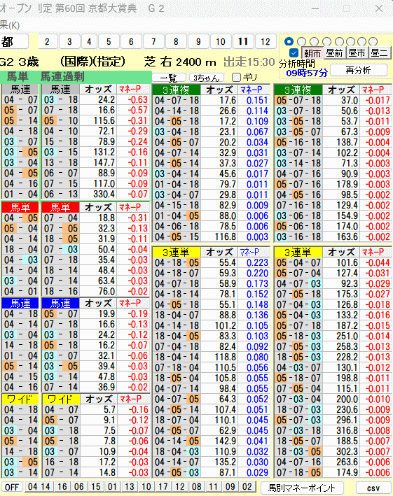 の推奨馬だ。一番推奨から流されたりBOXだったり。 推奨馬で離散(上側)