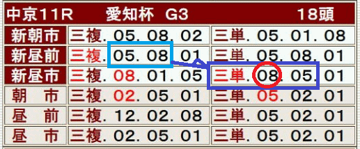 中京11R:9-3-12:単勝 13.5倍:馬連 48.7倍:3複 51.8倍(15:15)