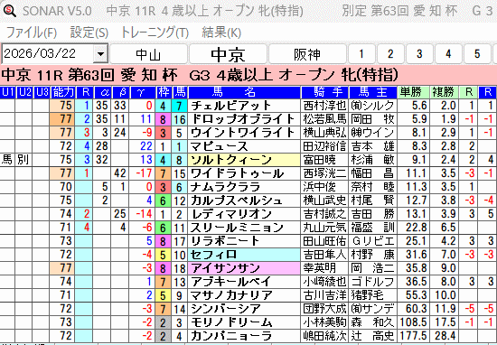 中山11R:3-2-5:単勝 16.7倍:馬連 87.5倍:3複 68.8倍(15:48)