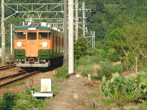 同地点の反対側。下り浜松行き列車のすぐ後ろ側が撮影名所の「金菊の大カーブ」。