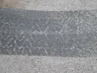 "隠れミッキー” 上の赤い車のタイヤの跡です。