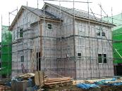 2001:10:06 13:06:16 家の周りに防水のための特殊な紙を貼っています。不動産会社の名前と電話番号が書かれてます。 |