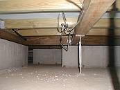 yuksit6.jpg 2005-04-16 床暖房が施工されているので、電源コードなどが見えています。下に落ちているくずみたいなものは、断熱材です。おそらく床暖房の設置中に落ちたものでしょう。 |