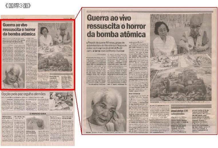 イラク戦争の報道に、広島、長崎で被爆した人々が第二次世界大戦での忌まわしい記憶をよみがえらせている。当時暮らしていた都市が破壊される瞬間を目の当たりにし、現在サンパウロに在住する被爆者らはいま、新たな世界的戦争への恐怖を募らせる。イラクでは31日、米軍が検問所で停車しなかった車1台を銃撃し、女性と子供7人が殺害される事件が起きた。(国際1面、3面に詳報)