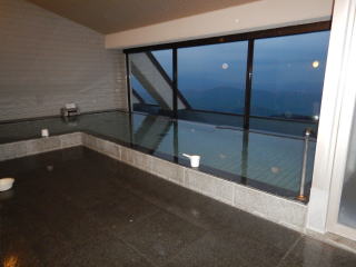| 湯 大浴場は、サウナとミスとサウナの付いた展望風呂です。湯は、伊豆大川温泉から引いている塩泉です。天気が良ければ正面に富士山が見えるようですが、残念です。 | |||