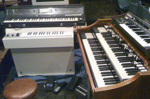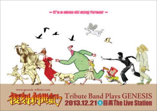 彼等もバンドを結成して、かれこれ18年になるでしょうか!?... メンバ-チェンジを繰り返しながらも、演奏と機材とコスチュ-ム(特に中島氏)に拘り、あくまでも70年代のジェネシスに近付こうとするバンド復刻創世記です。 彼等のライヴは2年3か月振りです! 中島靖雄(なかじまやすお) Phil Collins役 Vocal & Drums 結成当時から在籍するオリジナルメンバ-で、リ-ダ-格 本物のPhil Collins同様、フロントマンとして曲毎に語りが入り、場内を笑いの渦にする名手(^^) 源中 功 Chester Thompson & Bill Bruford 役 Drums & Percussion, Background Vocals 彼もまた結成当時からいるメンバ-で、黙々とドラムスでリズムを刻み、また、中島氏とのツインドラムは絶妙! マイク田原 Mike Rutherford役 12 strings Guitar & Bass Guitar, Bass Pedal 中島氏の提案(紹介)で、2004年頃?から途中参加した田原氏は復刻創世記と並行してBeef Purple (パープルトリビュート)としても活動。 バンド加入時は、逃げられないように、前任者のダブルネックを下取りさせ、前任者のMoog Taurus Iまでもバンド購入し、その一部を負担させてしまうという、かなり強引な経緯もあったようだ(;^_^A 岩崎(イワノフ)よしあき Tony Banks役 Hammond, ARP Pro Soloist, RMI Piano, Mellotron 2011年から復刻創世記に加入。 彼もまた機材に拘り、この21世紀に何とメロトロンまでもライヴ会場に持ち込んでしまうという物凄さである! 今回のライヴでは復興創世記メンバ-としては初のお目見えで、『イワノフのお部屋』コ-ナ-では、その機材を一つずつ紹介し、RMI PianoてはRick Wakemanの「ヘンリ-8世」を、MellotronではKing Crimsonの「宮殿」のフレ-ズを演奏し、ファンサ-ビスをしてくれました。 ![]() 松田 敦 (マツダ アツシ) Steve Hackett役 Guitar 彼もまた今回のライヴから初参加したギタ-さんですが、Garden Wall というジェネシス・コピ-・バンドでもギタ-弾いてます。 どうやら、今年6月のSteve Hackett 来日公演後、中島氏に川崎でナンパされ、スカウトされたようです!? セットリストは私の記憶によると、下記のとおりですが、いままで演奏されなかった?曲(例えば「White Mountain」や「Knife」etc)も演奏されたりと、何度も観に行ったにもかかわらず、とても新鮮さを感じられました。 今年はSteve Hackett来日公演で豪い盛り上がり、そしてジェネシス・トリビュ-ト・バンドで締めくくる。 ライヴ鑑賞する私にとっては最高の年でした♪ 開演前のアナウンス 「開演に先立ちまして、場内の皆様にお願いがございます。 隠し撮り(録り)するお客様のご迷惑になりますので、携帯電話はマナ-モ-ドに設定するか、電源をお切り下さい。」 [第1部]? 01 Watcher Of The Skies [第2部]? 02 Squonk 03 Lamb Dies Down on Broadway 04 Fly on a Windshield 05 Back in N.Y.C. 06 Firth of Fifth 07 White Mountain 08 Robbery, Assault and Battery 09 One for the Vine メンバ-紹介~イワノフのお部屋 10 Supper's Ready 11 Cinema Show 12 Dance on a Volcano 13 Los Endos [アンコ-ル] 14 Knife ★GARDEN WALL(2014年1月25日 大岡山ライヴハウスPEAK1)