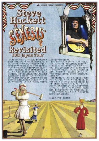 メンバ- Steve Hackett / Guitar Roger King / Keyboards Gary O'Toole / Drums, Percussion & Vocals Rob Townsend / Sax, Flute, Percussion & Keyboards Lee Pomeroy / 12 String Guitar, Bass, Bass Pedals & Vocals Nad Sylvan / Vocals 01 Watcher of The Skies 02 The Chamber of 32 Doors 03 Dancing with the Moonlit Knight 04 Fly on a Windshield 05 Broadway Melody of 1974 06 The Lamia 07 The Musical Box 08 Blood on the Rooftops 09 Unquiet Slumbers for the Sleepers 10 In That Quiet Earth 11 Afterglow 12 I Know What I Like 13 Dance on a Volcano 14 Entangled 15 Supper's Ready アンコ-ル 16 Firth Of Fifth 17 Los Endos ~ Slogans ~ Los Endos 正直な話、この21世紀になり、ジェネシスの70年代ナンバ-をこのようなかたちで観て聴けるとは夢にも思っていなかった! 近年の日本におけるプログレ人気は物凄いものがあるが、その期待にハケット氏は見事に応えてくれました! ジェネシスの元メンバ-達はかつての勢いはなく、また再結成したにしても、70年代の楽曲には興味がないのか?それらの楽曲を演奏してくれることを期待はできない。 しかし、70年代のジェネシスナンバ-に強い思い入れのあるハケット氏は、それらを完璧なバックメンバ-と共に、それも完璧に再現してくれました。 生きていて良かったあ~~~~~~~~~~(^^)