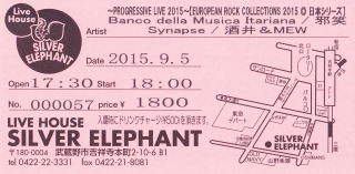 キ-ボ-ド&ベ-ス&ドラムというベ-シスト清原さん率いるシナプスが一番手として登場しました。 ★ヨ-ロピアン・ロック・コレクション(2015年9月5日 吉祥寺シルバ-エレファント)