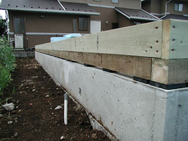 2001:09:09 13:36:23 見て分かると思いますが、基礎のコンクリートに換気口がまったくないです。代わりに土台と基礎の間に黒いものがはさんあります。最近よく見かける基礎パッキン工法で、従来のものよりも換気効率が高いすぐれものだそうです。