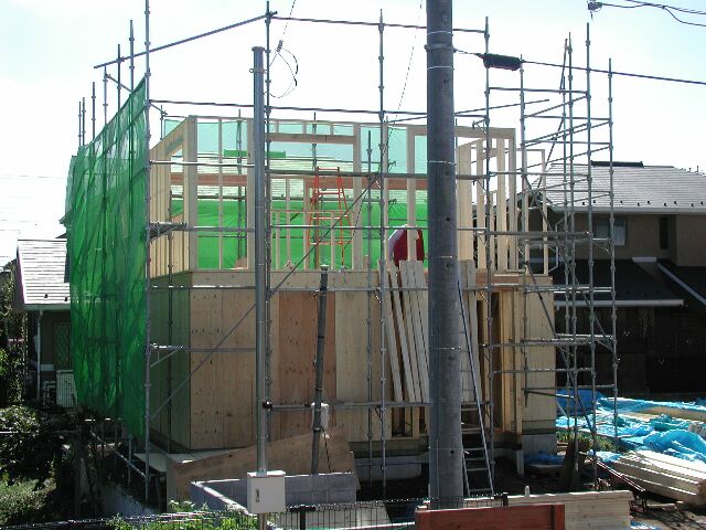 気を取り直して…。足場が組まれ、二階部分の工事が始まりました。結構早いペースです。