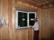 2001:10:01 19:22:03 トイレの窓です。サッシはかなり早い段階でつけるのですね。このサッシのメーカーは「サーティンティード」という輸入住宅でよく見かける樹脂サッシです。 開け閉めするのはスムーズではないですが、そのぶんきっちりと閉まります。 |