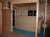2001:10:08 20:18:17 和室に積み上げられているのは、石膏ボードです。これを内壁に貼り付けていくのです。大工さんが休憩時間にこの上に寝てました。いいベットになるのでしょうか? |