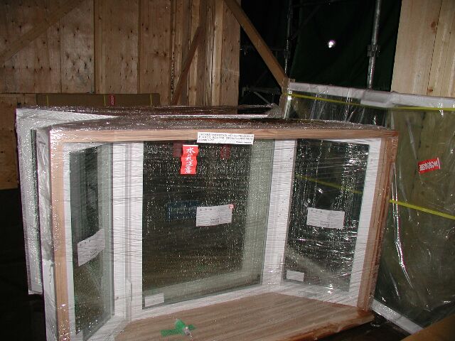 雨だった。サッシが置いてあった。明日取り付けるのだろう。
