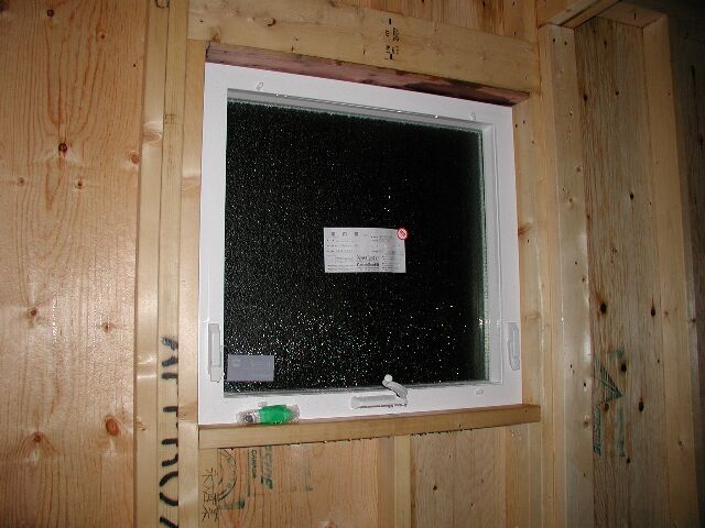 トイレの窓です。サッシはかなり早い段階でつけるのですね。このサッシのメーカーは「サーティンティード」という輸入住宅でよく見かける樹脂サッシです。