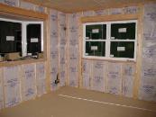 壁の断熱材はロックウールです。日東紡の「ダンレーマット」という商品名のわりとよく使われているもののようです。