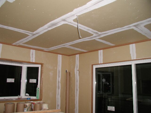 - 石膏ボードのつなぎ目をパテで埋めてあった。