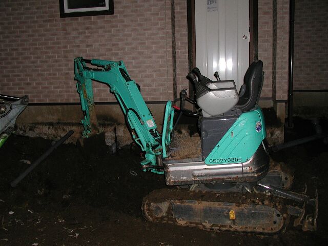 ユンボが登場です。この写真を撮ったのは真夜中近く。不審者と間違われるんじゃないかと思って、ちょっとドキドキしました。