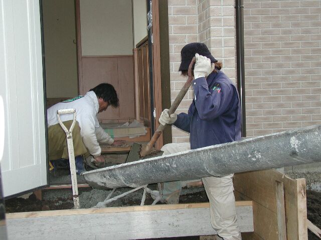 ![]() 2001:11:17 15:50:39 玄関土間と階段を作ってます。コンクリートミキサー車から直接コンクリを流し込んでます。けっこうな迫力でしたよ。 ![]() 2001:11:17 16:05:26 すばやい作業でコンクリをならしています。 ![]() 2001:11:17 16:08:46 こんな感じです。この人は基礎も作ってくれた人ですね。家作りの最初と最後に登場するのがコンクリ屋さんというわけです。 ![]() 2001:11:17 16:11:49 こんな感じに仕上がりました。 ![]() 2001:11:18 10:18:09 階段はこんな感じですね。 |