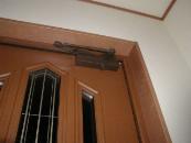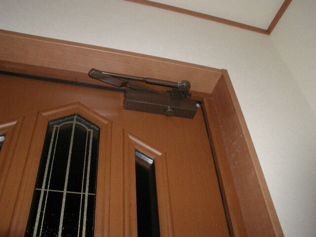 玄関ドアが付いた。一度本鍵で開けると工事鍵では開かなくなるそうだ。